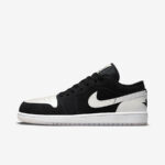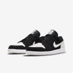 The Air Jordan 1 Low “Diamond” is a February 2022 release of the low-top retro basketball shoe in a colorway inspired by Air Jordan diamond basketball shorts. Versatile in a black-and-white color block, the “Diamond” features black synthetic nubuck on the toe cap, forefoot, eyelets, mid-panel, and collar. The perforated toe, Swoosh, and heel are designed in white leather. A black “Wings” logo is embroidered on the back of the shoe. The unique “diamond” logo found on the tongue tag mimics the design of the same detailing found on the sides of Jordan Brand’s mesh basketball shorts, which are inspired by classic Chicago Bulls shorts. A white rubber midsole and milky translucent outsole completes the look.