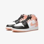 The Air Jordan 1 Mid “Arctic Orange” is a colorway of Michael Jordan’s first signature shoe that draws inspiration from the model’s original “Black Toe” makeup. The “Arctic Orange” displays white leather on the perforated toe and the mid-panel. Jordan Brand contrasts the aforementioned panels with black leather on the surrounding toe cap, forefoot, and eyelets overlays. The two-tone look is based on the color block of the “Black Toe” Air Jordan 1 from 1985. Elsewhere, the collar, heel, and Swoosh are dressed in Arctic Orange leather. A black “Wings” logo appears on the collar and an orange Jumpman and “Air” detailing is found on the black tongue tag.
